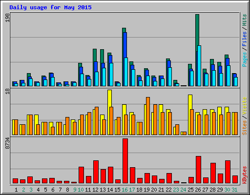 | Day | Hits | Files | Pages | Visits | Sites | KBytes | ||||||